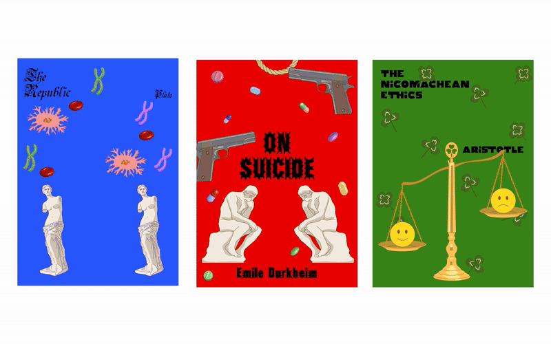 I thought it would be nice if the philosophical idea was not too difficult and it would be a weird but fun playground, and based on this idea, I decided to redesign the cover of the existing philosophy book. I want to convey the meaning of finding fun by catching cloud-like questions in a philosophy that feels difficult.